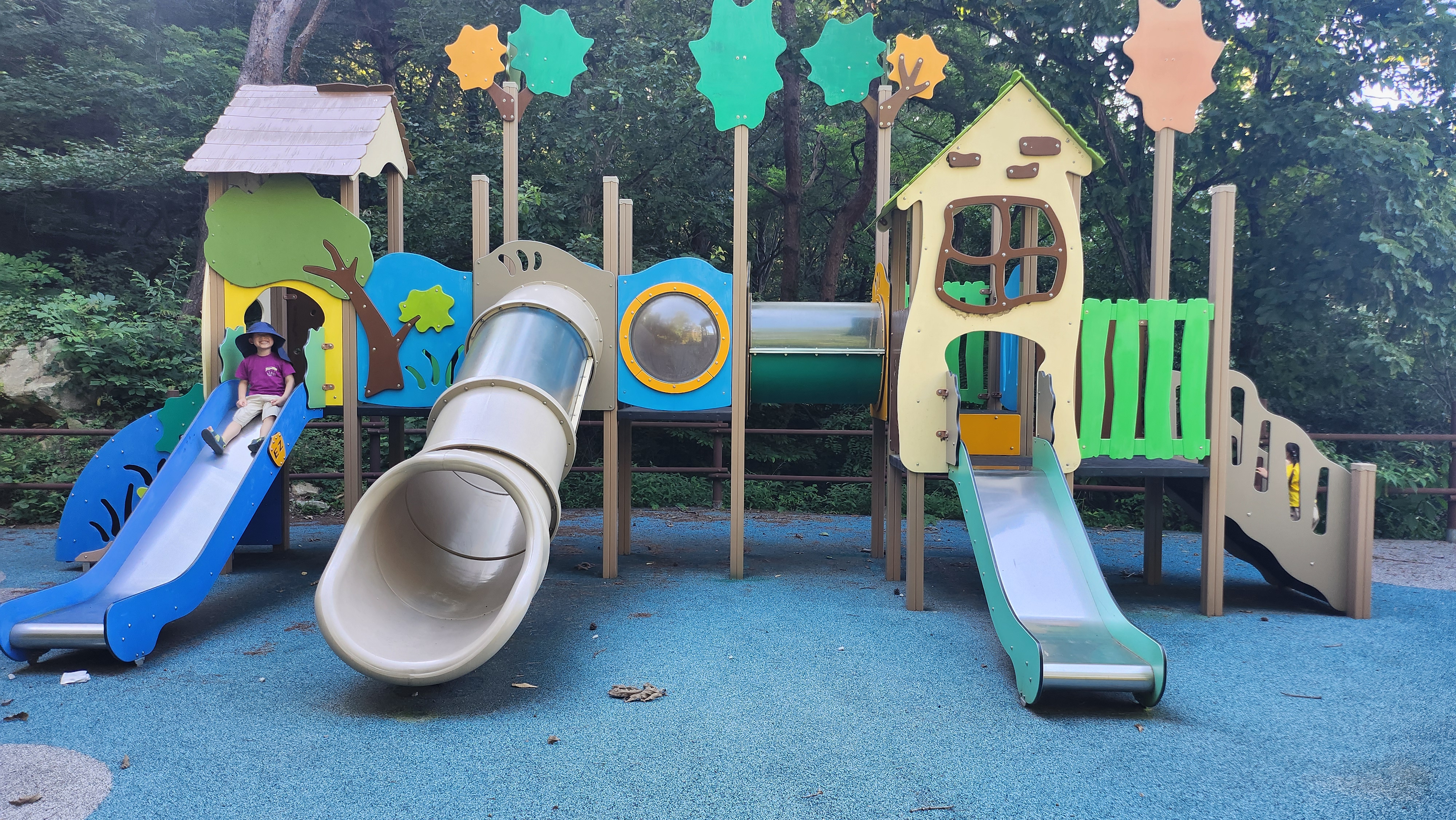 휴양림에 도착했으니 주변을 둘러볼까 해서 나갔습니다. 걷다 보니 유아숲체험원이 있었는데, 산길로 조금 올라가니 작은 놀이터 같은 공간이 나왔습니다. 하지만 오랫동안 사람의 손이 닿지 않은 듯해 보였고, 조금 놀다가 내려왔어요.