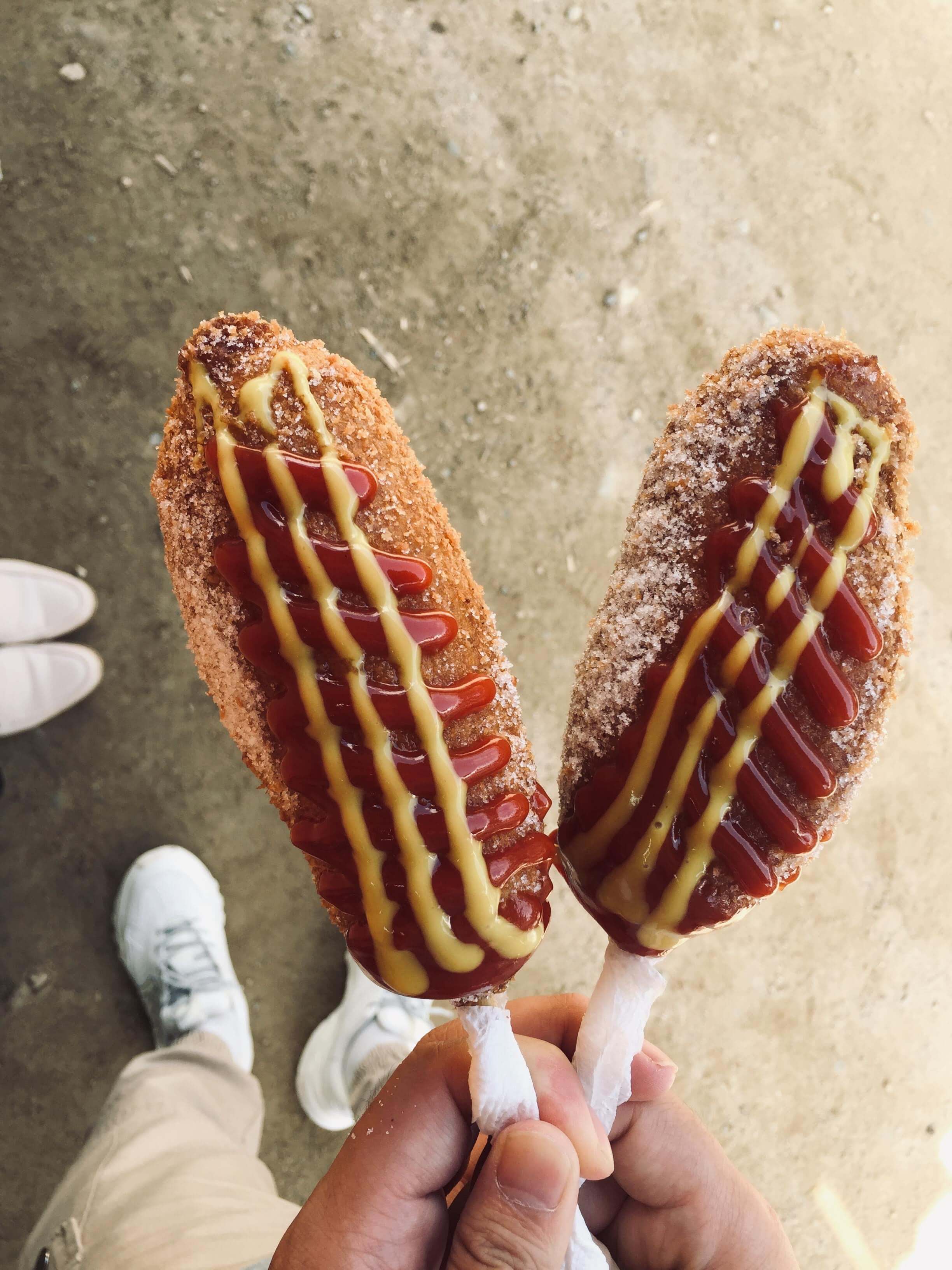 그런데 몇 년 후에 다시 갔을 때는... 핫도그가 조금 작아진 것 같더라고요. 맛도 예전과 조금 다른 느낌이었어요. TV에 나오고 유명해지면서 그런가 싶기도 하고요. 예전 그 처음의 감동만큼은 아니었지만, 그래도 여전히 맛있었어요. 다른 핫도그에 비하면 확실히 수준이 다르니까요.